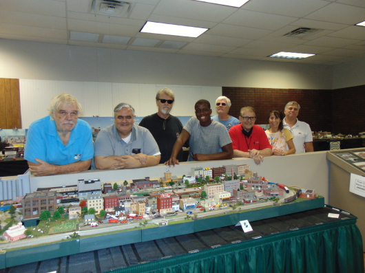 Thursday, September 29, 2022 (L-R) Bill Nielsen, Norman Cosic, Dan McMurtrie, Magnus Meekins, Tom Rottenberg, Ken Sargeant, Saralyn Sargeant, Steve Maltiva standing behind the "T-TRAK" Scale Modular Layout at the Plantation Historical Museum. Members participating today were Ken Sargeant, Saralyn Sargeant, Tom Rottenberg, Bill Nielsen, Norman Cosic, Brandon Mayfield, Joe Pisciotti, Magnus Meekins, Dan McMurtrie, Steve Maltiva, John Michna, Joe Parisini, Lauren Bhaggan (13) (picture by Lauren Bhaggan) https://www.fcmts.org/plantation-historical-museum-page-7/